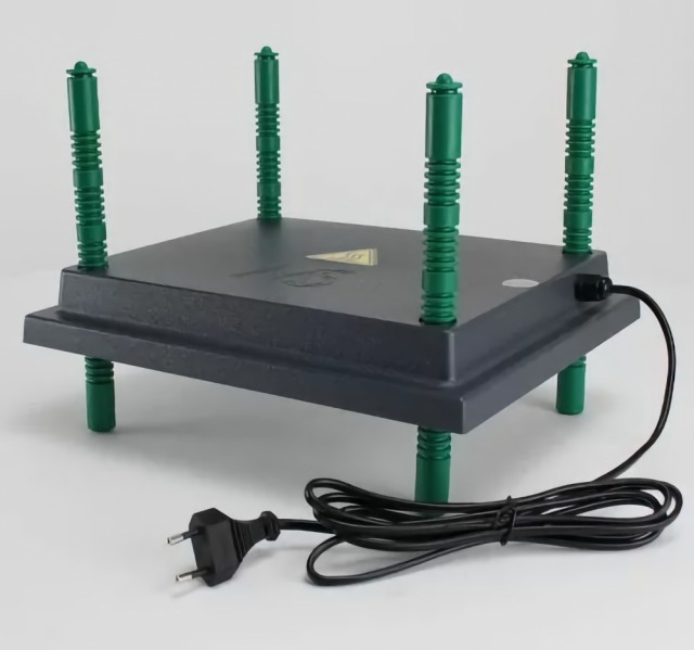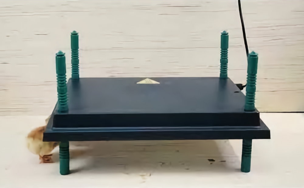 Denne varmeplaten fungerer på en lav effekt på kun 20 watt, mye mindre enn tradisjonelle varmepærer. Derfor kan en varmeplate tjenes tilbake på bare noen få måneder. De grønne bena er veldig lett justerbare i høyden.